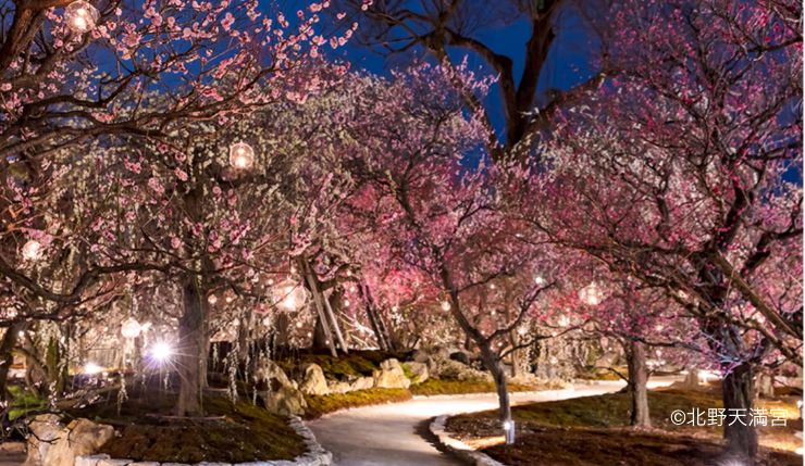 天皇誕生日 北野天満宮 梅園「花の庭」ライトアップ スタート