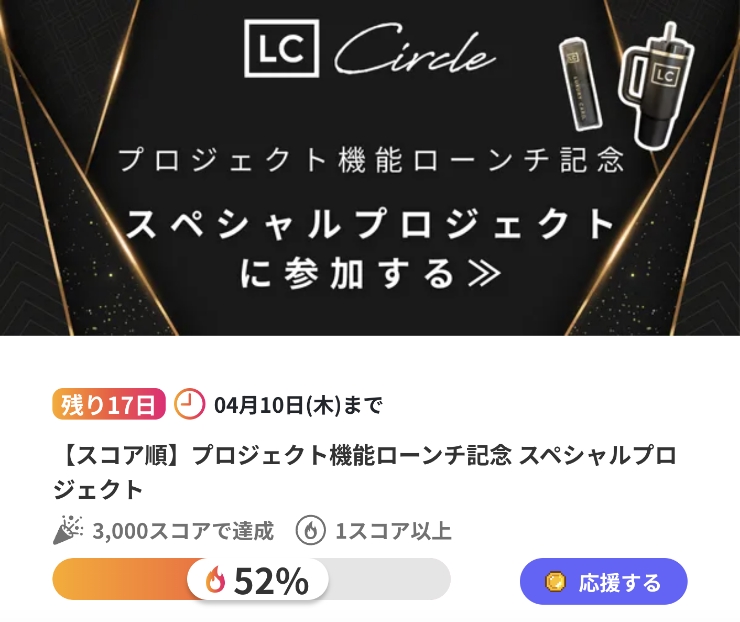 LC会員様限定のオンラインコミュニティ「LC Circle」にて、新機能のローンチを記念した特別プロジェクトを開催中!