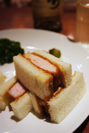 北海道・十勝のブランド豚、”かみこみ豚”を贅沢に使用したカツサンド。中でもロース肉は、和牛のように美しいサシが入っていて柔らかく、それでいてサッパリ。米油を使用して揚げられたカツは、食べ口も軽く脂っこくないのが特徴。