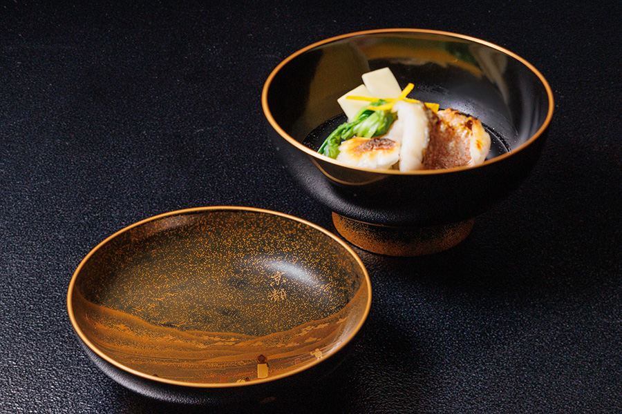 ① 彩箔コース33,000円(税込)または お土産付き・京料理 箔x 深川製磁コース45,500円(税込)のいずれかをご予約の場合、ウェルカムドリンク(人数分)をご提供いたします。 ②通常利用不可、アクセス不可の「離れ」へ移動後に、コースのデザートとアフタードリンク(いずれも人数分)をご提供いたします。 ※別途サービス料10%がかかります。 |