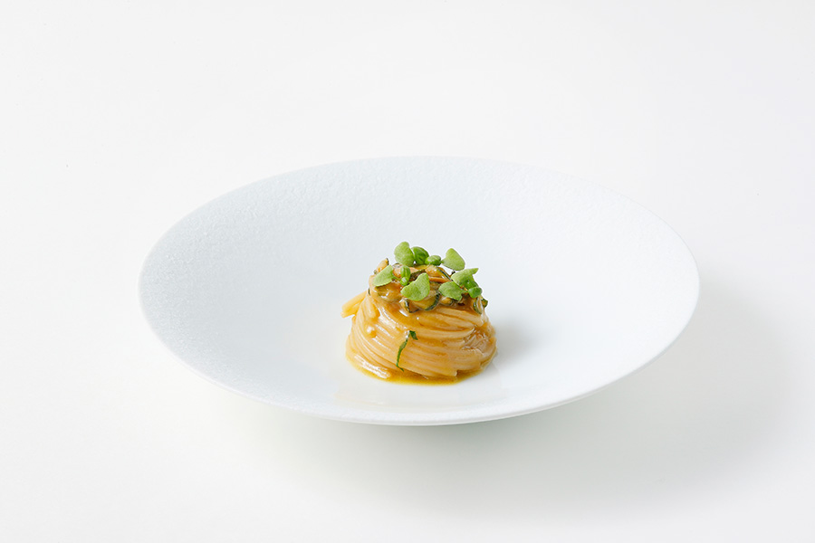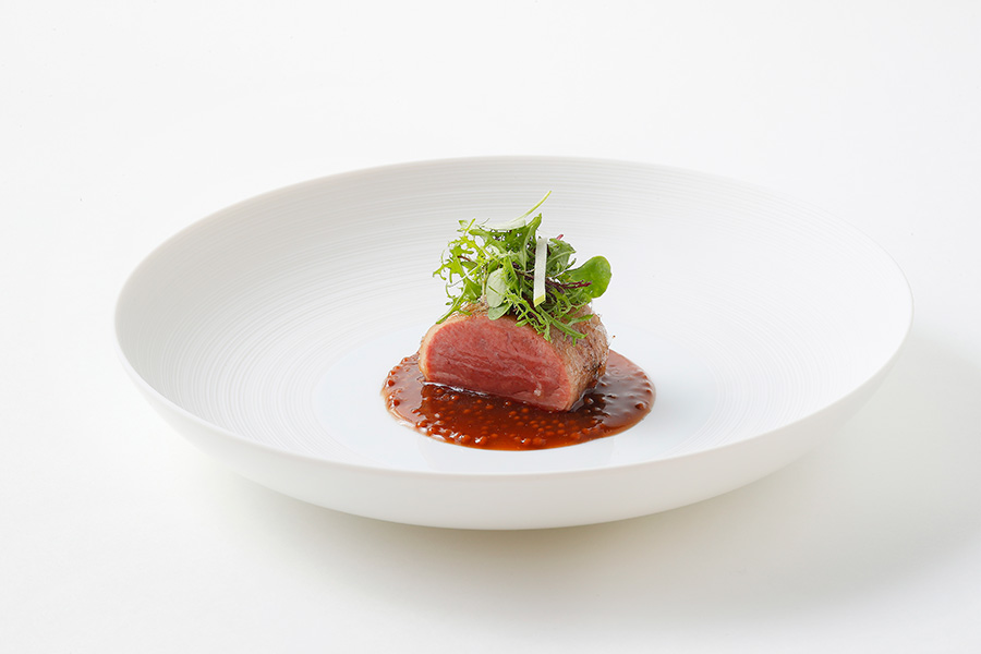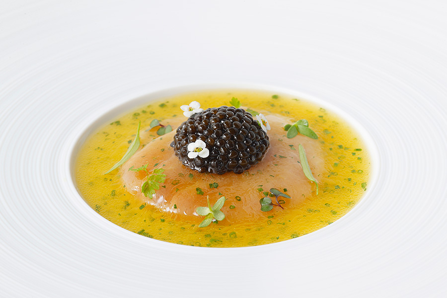 イタリア料理をベースに、独創的なアレンジを加えた最高級の美食をご堪能いただけます。洗練された新しい空間では、ブルーグレーとゴールドが織りなす優雅な雰囲気の中で、上質なサービスをお届けします。曲線美が際立つ座席は、まるで包み込まれるような心地よさを提供し、心ゆくまでお食事をお楽しみいただけます。